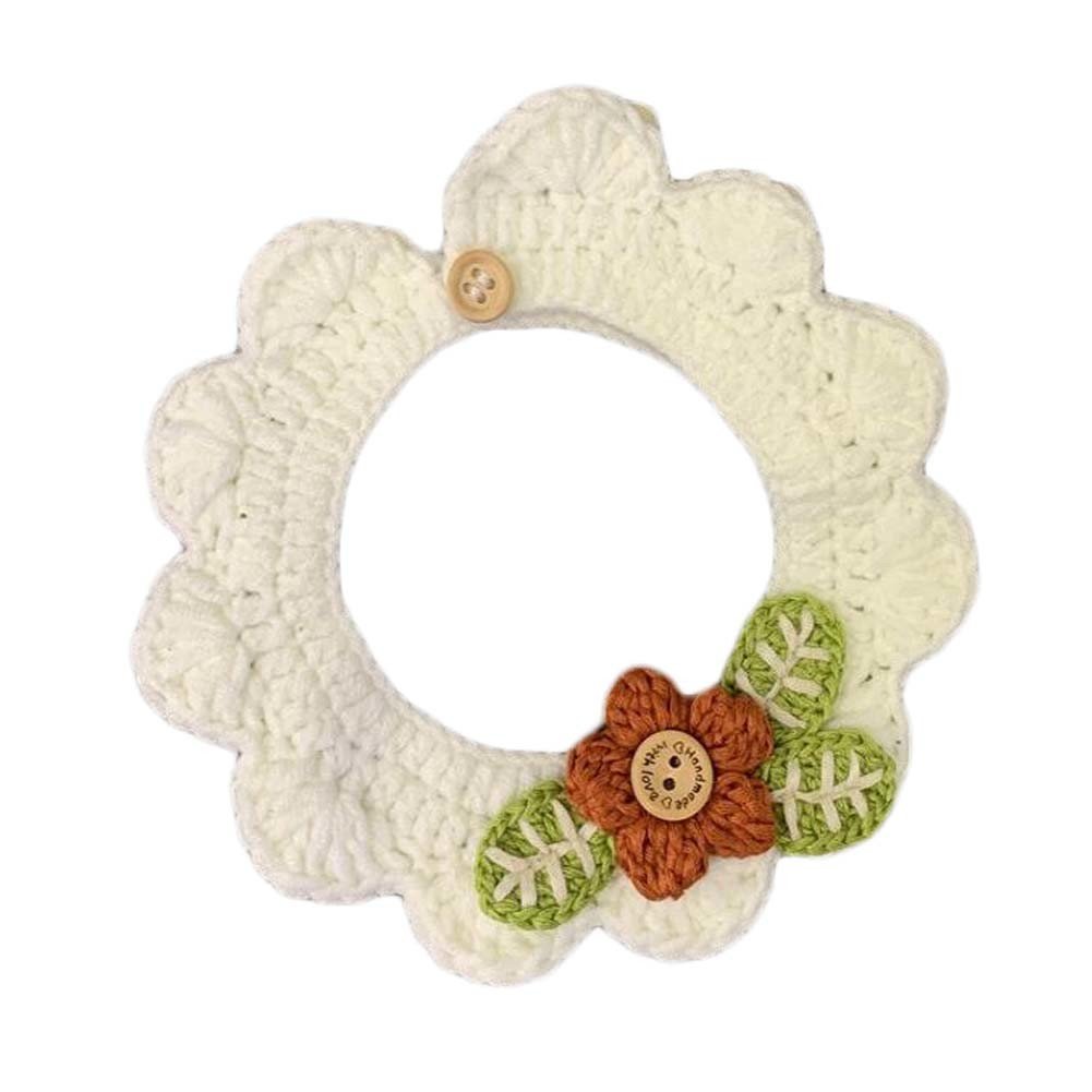 White Flower Pet Knitted Collar Handmade Crochet Cat Dog Necktie Collar Cute Scarf Necklace Bandana Bib